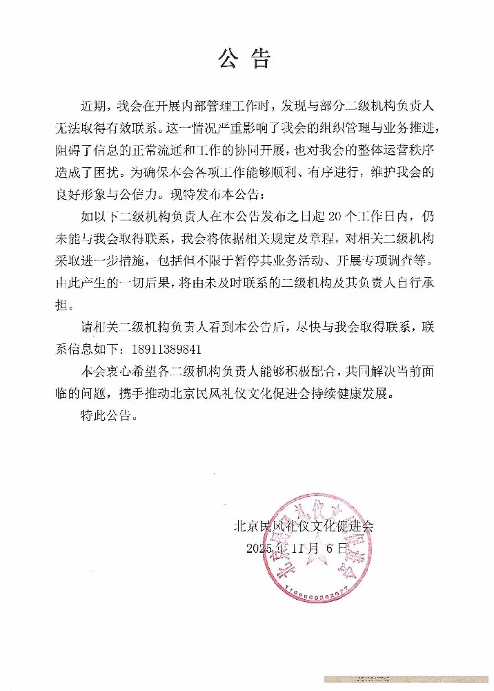 • 【公告】关于北京民风礼仪文化促进会执行会长任命公告